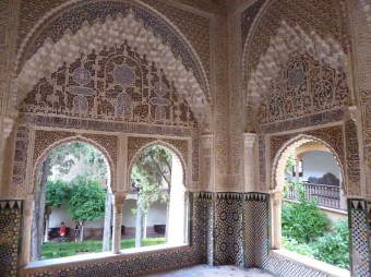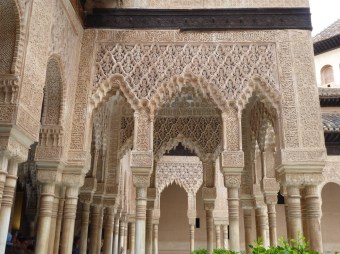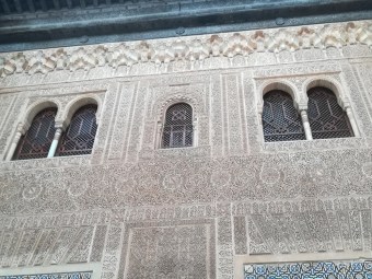 The motto of the Nasrid Dynasty, ‘there is no victor but Allah’ is inscribed in the stonework in Classical Arabic calligraphy many times. Sayings such as ‘Be sparse in words and you will go in peace’ along with words such as ‘Happiness’ and ‘Blessings’ are also engraved in the walls and pillars.