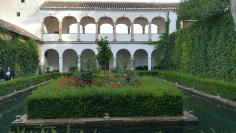 Thankfully, a few minutes later, the rain subsided. However, as the forecast was due to further deteriorate as the day progressed we decided to visit the Generalife gardens first. Pretty and colourful flower beds, fountains and mazes fill the gardens that were originally planted seven hundred years ago. Generalife is pronounced gen-e-ral-lif-ee and when said correctly does not sound like a British insurance company. The name translates roughly as ‘Architect’s Garden’. Its palaces and gardens were the recreational area for the monarchs from the adjoining Alhambra.