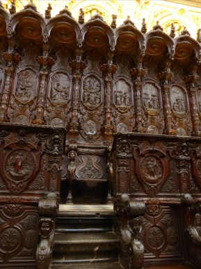 We have seen one or two religious buildings where a minaret has been built to replace a bell tower and then the construction reversed over time. Perhaps, however this place is unique. The interior has grilled catholic chapels around its perimeter, the Islamic arches are throughout the building and at its centre is an ornate catholic chancel close to carved wooden choir stalls and a beautiful stained glass window. This area is known as the cathedral in the centre of the mosque.