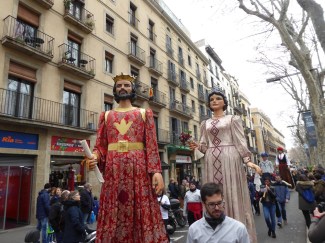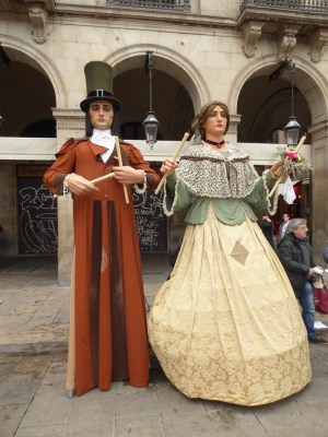 We believed that the parade would commence at 10.30am, leaving from its starting point in the square named Plaça Reial. We allowed plenty of time and actually followed two giants down Las Ramblas, as they made their way to the square. They are extremely professionally made and adorned with many minute details. One man carries the effigy on his shoulders. There is a gap in the giant’s attire for the person to see through and each giant has a team of 4 to 6 people to take a turn at carrying the heavy giant and to support it if it wobbles. Many of the giants are over 4 metres tall.