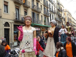 We could hear the music as we got closer to the Plaça de Sant Jaume. We just caught a couple of minutes of the giants dancing. They then tentatively made their way through the masses of people and left the square disappearing into one of the many narrow streets twirling around as they went.