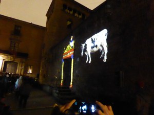 We left the hotel again around 7ish and headed back into the old town. There were a few sound and light shows taking place; it was the final evening of the Santa Eulalia festival. We watched one that was projected onto an archaeological excavation, and another on the side of one of the many old buildings.