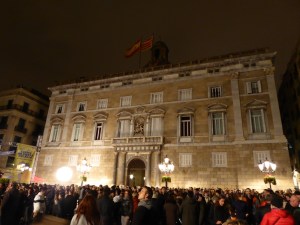 After the procession had passed by, we walked to the Plaça de Sant Jaume hoping to see the human castells. Teams climb onto each other’s shoulders to form a human tower; the towers can reach incredible heights.