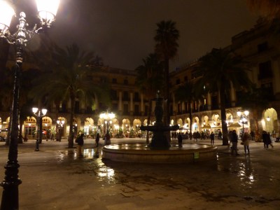 We made our way to the lovely Plaça Reial. I love this square with its many beautiful palm trees, the fountain in its centre and the fabulous Gaudi designed lampposts. There is such a wonderful atmosphere!