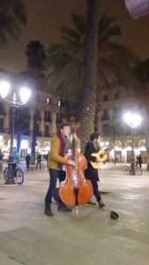 The Plaça Reial is a beautiful square with many palm trees and ornamental black lamp posts, some of which were designed by Gaudi. We soaked up the party atmosphere and then returned to Las Ramblas intending to get a good spot to watch the parade. After standing for quite a while in our ‘good spot’ and seeing no signs of the parade starting we returned back to the square and asked someone what time it would start. “Not until 11.30am” we were informed, “10.30am is the time for the giants to meet”, the musician added. We went for a cup of coffee before returning to ‘our spot’. Shortly before the starting time, people of all ages, tourists and locals quickly lined the streets.