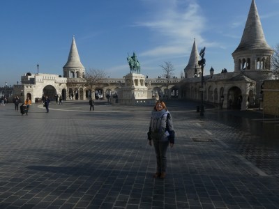 So, we stood outside a beautiful imposing building and waited for the bus which would take us across the Danube.