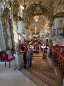 It was lovely to sit there admiring the ornate decoration. We ordered a couple of Hungarian Goulash soups and two beers. The waiter informed us that we were free to wander and to take photographs of our surroundings if we wished.