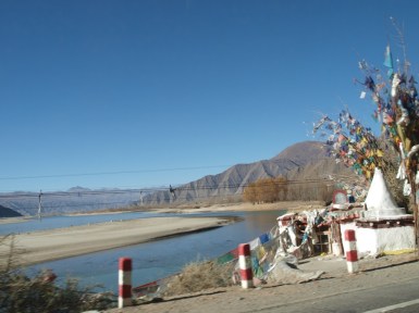 We soon left Lhasa behind and as we travelled through the Tibetan countryside, we saw some pilgrims walking along the roadside. They would be making their way to Lhasa to visit the city’s revered sights. Dawa pointed out a fish burial site. Here in Tibet there are sky burial sites and fish burial sites. Our guide explained that it depended where the deceased had lived as to which method would be used. Dawa added that it is very unusual for Tibetans to eat fish, as most believe that they are the embodiment of their ancestors’ souls.