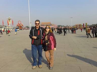 We enjoyed wandering through the huge area and learning a little about the architecture. Feng Shui was of course dominant throughout the Forbidden City. Two huge stone lions protected each entrance; the male with a ball underneath his paw and the female rests one of her paws on a cub.