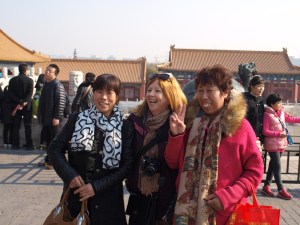 The Forbidden City was home to Emperors for almost 500 years. As the name suggests mere mortals were not permitted into the Forbidden City, indeed it is said that no one could enter or leave the palatial site without the permission of the emperor. Only the emperor himself used one of the entrances except on his wedding day when for that occasion only, the empress was permitted to use it too. The area is huge, the entrances to many of the buildings are cordoned off by rope and we soon realised that we would have to join in pushing and shoving hard while smiling at the same time. It all seemed to be good-natured and clearly there was no other way to get a glimpse of these grand interiors. We are so pleased that we came at this time of year and not in summer when there are many more tourists.