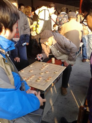 The four of us spent some more time in the park enjoying the incredible talents of the singing groups and the different dancing troupes before heading to the aptly named Long Corridor. Beneath the colourfully painted wooden roof of the open corridor, many people were either playing games or watching a game. One of the most popular on this particular Saturday afternoon appeared to be Chinese chess. This is not the chess that most of us westerners are accustomed to but is played with round discs with Chinese characters on. A lot of these chess sets were handmade.