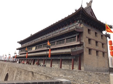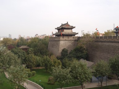 The city’s walls cover a distance of 13km; we walked for maybe an hour or so. We were pleased and relieved to find our guide very pleasant and informative, a complete contrast to the previous guide. Apart from telling us about the city of Xi’an, she chatted generally. She told us that she has a 13-year-old son, who has to leave home each day at 6.40am to travel to school and that he does not return home until 8pm. He then has homework to do which takes him until midnight to complete. He then has to be up again at 5.30am the following day.
