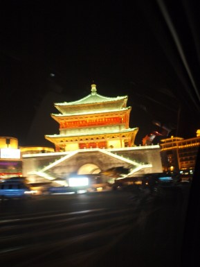 As we drove to and from the theatre, Jessica pointed out both the Drum and Bell Towers. Both structures were colourfully illuminated.