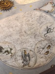 Scenes of constellations, celestial bodies and zodiac signs decorate the ceiling. Apparently they are intended to represent the link between time, destiny and human life.