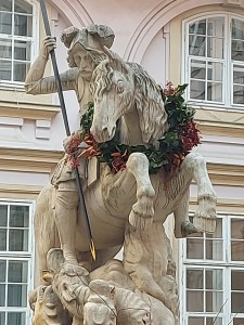 Leopold’s Gate is a stunning baroque ceremonial entrance gate to the castle. The sculptures atop the gate depict Greco-Roman armour.
