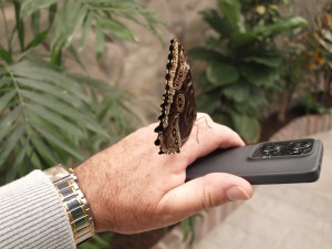 The colourful lepidopterans are from tropical forests around the world. Their life span is just 2-4 weeks. We noticed tears on some of their wings, apparently this is a sign of aging; flying also makes the wings tear.