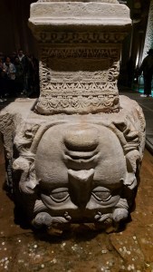 There are over 300 giant columns in the cistern. A remarkable statue of Medusa’s head is used as a column base. Apparently there are two, but I can only recall seeing one. The one I saw was upside down, the other, is seemingly on its side.