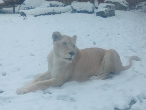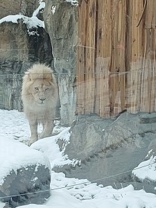 As soon as we entered we heard the roar of a lion and we quickly walked over to his enclosure. It seemed a little peculiar to see a lion in the snow, his mate was in an enclosure a few metres away. She had recently given birth to cubs, which we assumed were inside.