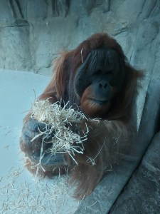 We did however see the orang-utan family for a second time. When we popped back into their ‘house’, there was no sign of them but once again, we agreed to wait a while. The whole family appeared again, Mengala the female was born in 1996 at Budapest zoo. Her partner Filip was born in 2000 at Hodonin Zoo (Czech Republic) and as I mentioned earlier Baby Cahya was born in 2023.