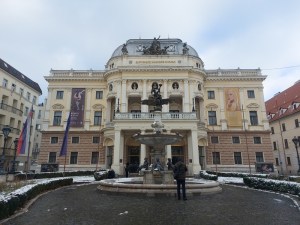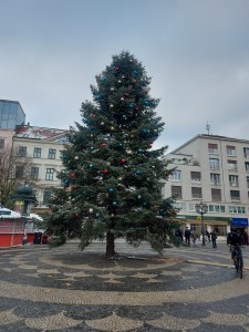 The square is home to the National Theatre. Like in other areas of the city, workmen were busy assembling wooden huts for the much anticipated Christmas market.