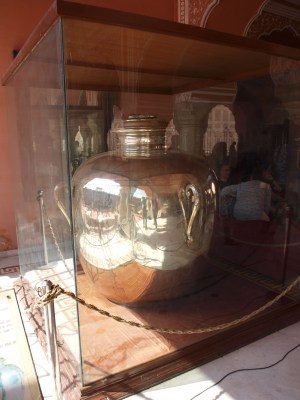 The urns were 1.5 metres high and had a circumference of 4.5 metres. Each urn held 4,000 litres of water from the River Ganges for the Maharajas personal use.