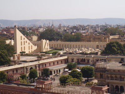 After the refreshments that were served in a pleasant gallery, Pushpendra took us to a private balcony which offered remarkable views, including vistas of the Palace of the Winds and the Jantar Mantar.