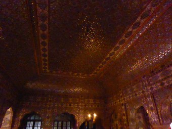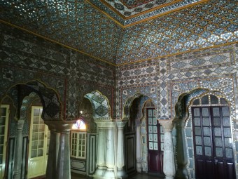 This palace’s walls are covered with millions of tiny pieces of mirrors arranged in mosaic style, depicting vases of flowers and other intricate designs, creating a remarkable effect.