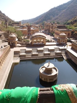 The Galtaji Temple was built to honour the man, who was later known as Saint Galav. Due to the number of monkeys it also became known as the Monkey Temple. Natural water springs flow through the complex of temples and into seven kunds (water tanks). Pilgrims flock to the site to bathe in the waters that are considered sacred. The belief is that the bathers will be cleansed of their sins.