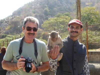 However when Dave and Pushpendra fed peanuts to some of the monkeys, they appeared to be fairly tame. One of them did jump onto our guide’s shoulder and didn’t seem to want to get down again. At one point the small primate started to fiddle with Pushpendra’s earring and for a second or two he thought it was going to attempt to pull it out.