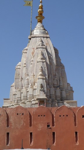 At 9.30am we left the hotel for the day’s sightseeing tour. Our first stop today was the Lakshmi Narayan Temple. This beautiful white marble religious building is usually referred to as the Birla Mandir. Birla is the name of the family of well known industrialists and philanthropists who constructed it.
