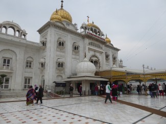 Our next stop was one of the most prominent Sikh temples in Delhi. Ram parked the car in the huge underground car park of the Gurudwara Bangla Sahib. The huge white building trimmed with gold is quite an impressive sight.
