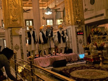 A band plays within the temple. Its members change every 2 hours and kirtans (Sikh devotional songs) are sung for 24hours continuously.