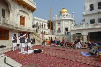 Entering its interior we saw a Sikh perched on large cushions reading the holy book; he would read it for five hours and then someone else would take his place. The book is completely read within 24 hours.