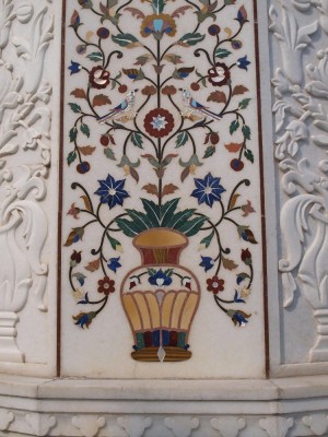 Dave and I were drawn again to one of the beautiful ornate buildings that we had first admired yesterday. Its white marble exterior was inlaid with semi precious stones including agate, jasper and lapis lazuli. Beautiful flower designs were created from the stones.