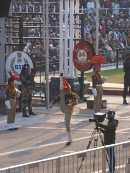 It is around 30 kilometres west of Amritsar and it is the only road border between India and Pakistan. Each afternoon a military ceremony takes place in a huge stadium to lower the two countries’ flags. The tongue in cheek performance involves soldiers from both countries marching and adopting threatening stances towards each other.