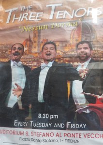 Just a short walk and we were back at the Auditorium Santo Stefano for a two hour opera and classical music show. The ‘Three Tenors’ play twice weekly at the venue