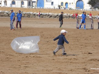 Nearby, a small boy was laughing hysterically as he ran pulling a string attached to a large plastic bag behind him.