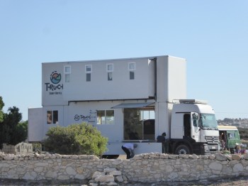 ‘Surf Hut’ was the name of a huge truck that is a mobile hotel used no doubt to chase the surf. An ingenious idea, the top of the vehicle appeared to be a sleeping area and extended outwards, the lower part had a lounge area and an area for storing boards and equipment