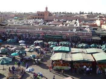 After wandering aimlessly around the interesting souks we headed to the Jemaa-el-Fna Square. It appeared to be busier than the previous evening. The same entertainment was taking place plus we noticed some acrobats.