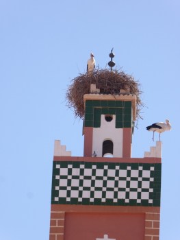 Just before we set off on the long return journey to Marrakech, we spotted another stork’s nest on a mosque’s minaret.
