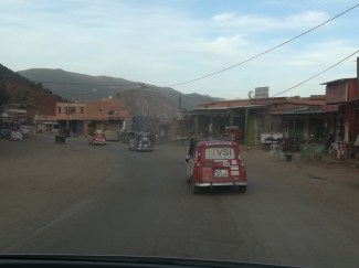 In addition to the spectacular scenery, we saw many more rally cars and this time we were all travelling in the same direction, towards Marrakech. Throughout the day we must have seen 500. Unfortunately, we passed around 20 that were broken down. Their bonnets were up and young people were bent over them frowning and tinkering with their engines.