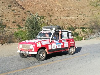 Also sharing the road but thankfully driving in the opposite direction are numerous rally cars as it is the annual Renault 4L Trophy.