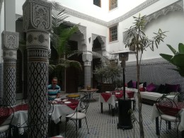Dave had a coke and I ordered a G. & T. which here in Morocco means a ‘glass of tonic’! The bill was even cheaper than the snack places in the Jemaa-el-Fna Square in Marrakech and the tagines much larger!