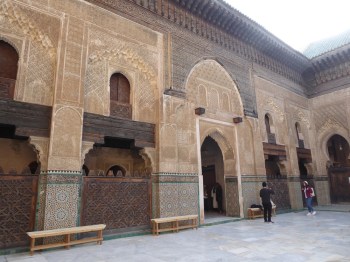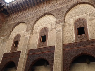 Bou Inania Medersa was also a mosque and is the only medersa in Morrocco with a minaret. The hydraulic clock that we saw yesterday was built in conjunction with the medersa and the clock was apparently overseen by the mosque’s muwaqqit (timekeeper and astrologer).