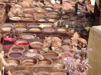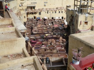 It took us a while to find the ‘Tanners Quarter’, also known as the ‘Chouara Tannery’. Leather is exported all over the world from this, the biggest of three tanneries in Fez.