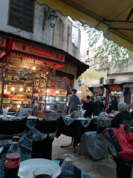 There was a jolly atmosphere in the medina. Locals and tourists mingled together as they sauntered up one of the main arteries. Families with small children were buying drinks from stalls.