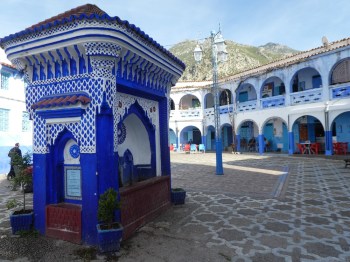 Our main meal of the day was eaten on a terrace with a view to a Kasbah, that was built in the 15th century. Above us were the green foothills and a craggy mountain top; we marvelled at what a wonderful place Chefchaouen is.