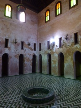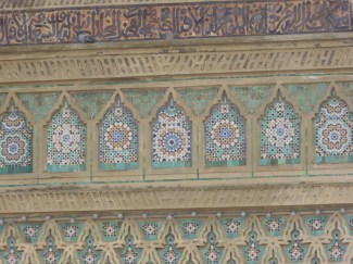 The medersa, or madrassa as it is also referred to, (indeed the word medersa is above the entrance and ‘madrassa’ is on a plaque at the side of the entrance)was constructed in the 14th century. It is similar to its namesake in Fez but sadly there are many signs of disrepair. The admission fee is three times the cost as the one in Fez and we hope that the extra revenue goes towards renovating and maintaining the former Koranic school.