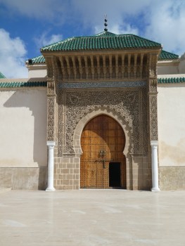 The really frustrating thing is that the restoration of the building is actually complete and the city of Meknes is waiting for the King to inaugurate it. The door to the mausoleum was open, (which frustrated me even more!) but the gate on the fence surrounding it was locked and would remain so until the official opening.