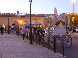 Back in the large square, which was now illuminated with a few decorative lights, people were still mingling and chatting. Small decorated carriages resembling crowns or Cinderella’s coach were offering rides around the imperial city’s sights. After a few minutes stroll, we returned to the riad.